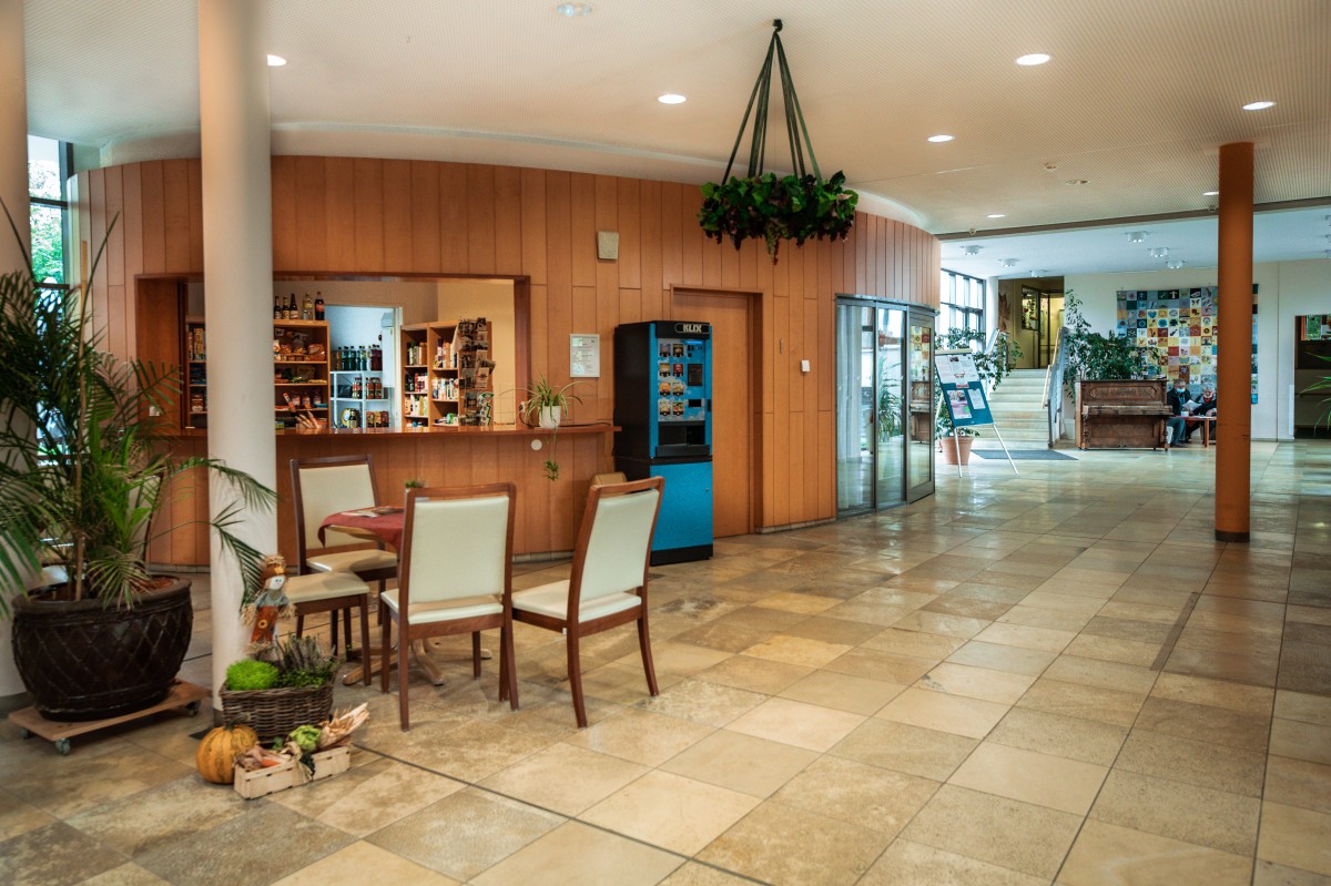 Das modernisierte Haus mit lichten Ein- und Ausblicken durch große Fensterfronten bietet Pflegeplätze für alle Grade der Pflegebedürftigkeit einschließlich der Demenzpflege.